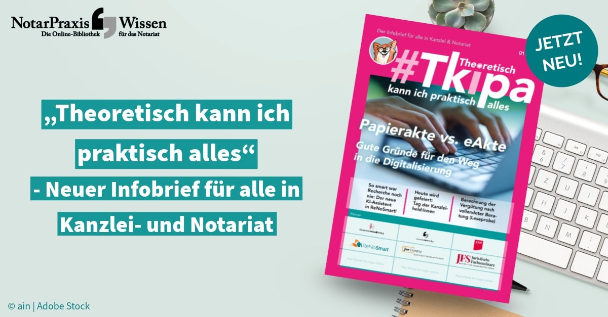 Der ZAP Verlag legt zum Jahresbeginn 2026 einen neuen kostenfreien Infobrief auf, der sich speziell an die Mitarbeitenden in Kanzlei und Notariat wendet. Unter dem Titel „#TKIPA – Theoretisch kann ich praktisch alles“ erscheint die neue Publikation zweimonatlich als PDF.